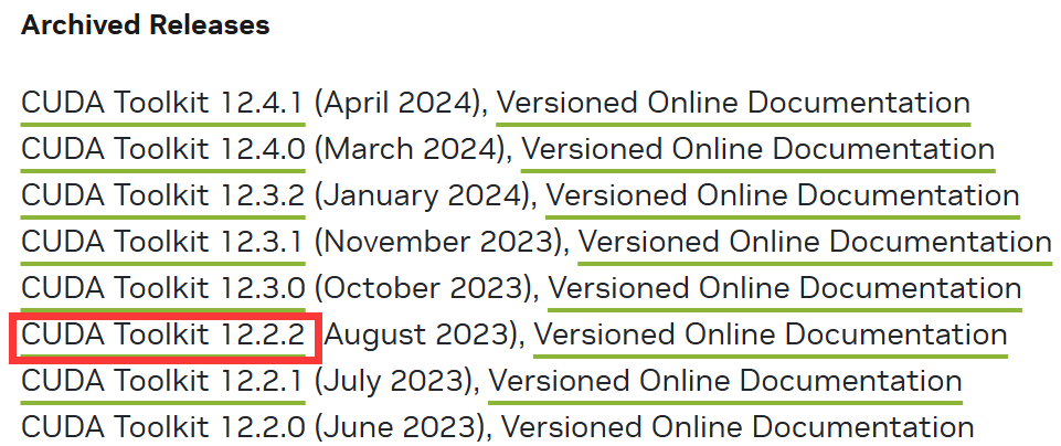 点击下载对应CUDA 12.2的版本:CUDA Toolkit 12.2.2