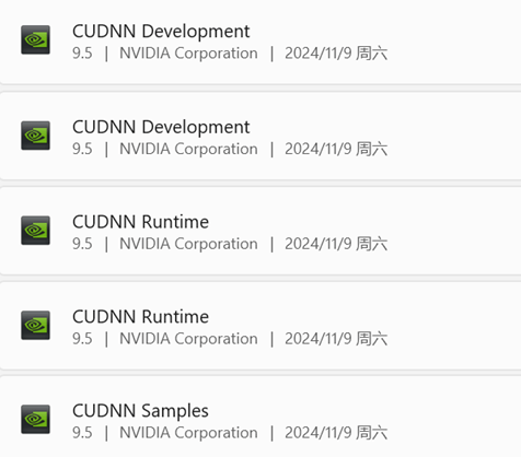 到Windows 设置 – 应用 – 安装的应用,首先卸载cuDNN,如下图所示的5项: