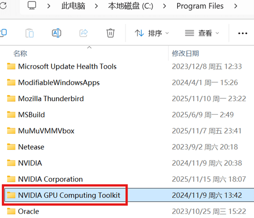 (3)删除文件夹C:\Program Files\NVIDIA GPU Computing Toolkit,可以看到里面还有CUDA文件夹,但已经空了。